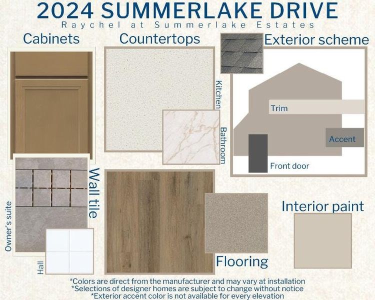 The Raychel provides you with a welcoming, open living area with luxury vinyl plank flooring, and a sunny dining café. Relax in your beautiful owner's suite with an elegant tray ceiling, a walk-in wardrobe, and an en-suite bath including a decorative tiled shower with glass enclosure, dual vanities, a linen closet, and a closeted toilet.
