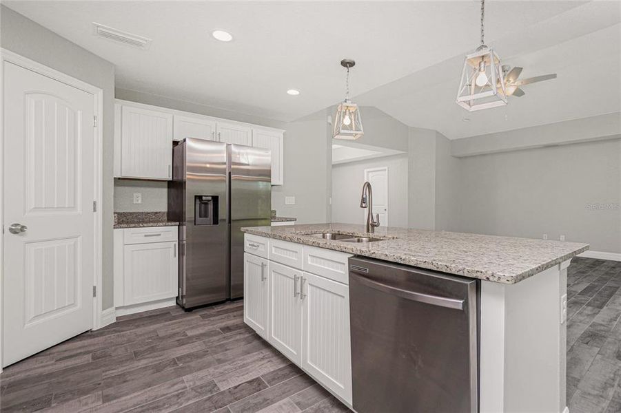 Model features an open floor plan from the minute you walk in the door. This home as 1700 sq foot of Living Space, 3 bedrooms, 2 baths and 3 Car Garage. The open kitchen is perfect for entertaining, includes a spacious island, breakfast/dining area, and doors leading to the lanai to enjoy your morning coffee. The master bedroom includes a walk-in closet, Tiled shower, and Dual sink vanity. The 2 Guest bedrooms are located on opposite side of Master making it a split floor plan. Guest bathroom has a tiled shower/tub combo. The living room features cathedral ceilings. The home features plank tile throughout, granite countertops in the kitchen and bathrooms, recessed lighting, ceiling fans in every room, and Stainless Steel Appliances. The home comes with hurricane/storm shutters. COME VIEW THIS BEAUTIFUL HOME or CALL TODAY FOR AN UPDATED LIST OF OUR BUILDS! PLEASE NOTE - the pictures for this listing are representative of the subject home being constructed. Interior and exterior paint colors, shingle colors, tray ceilings, fans, lights, manufacturer of appliances, interior/cabinet door style, and landscaping are subject to change.