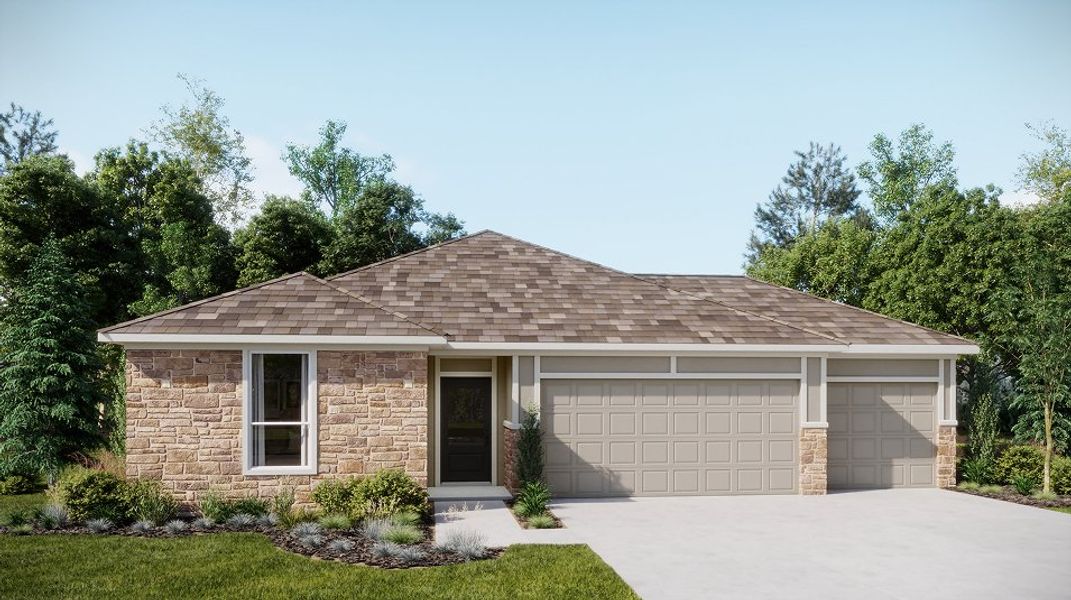 This new three-bedroom home offers convenient single-story living. Two secondary bedrooms are secluded near the front of the home, leading to an inviting open-concept floorplan that boasts convenient access to a covered patio for seamless indoor-outdoor living. A lavish owner’s suite is nestled into a private rear corner, complete with a full bathroom and walk-in closet. A spacious three-car garage completes the home.