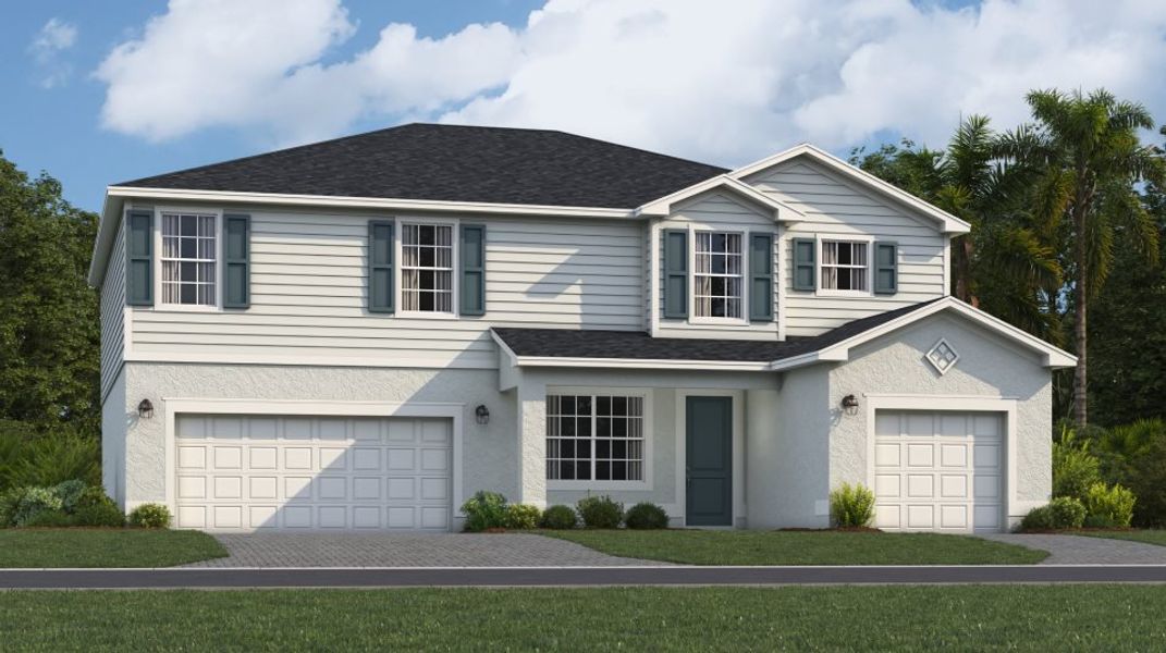 This expansive two-story home is the largest plan in the collection. On the first floor is a living room, formal dining room, open living space with a kitchen, bedroom suite and an attached lanai for outdoor activities. Upstairs hosts the owner’s suite, three secondary bedrooms and a cozy loft overlooking the Great Room.