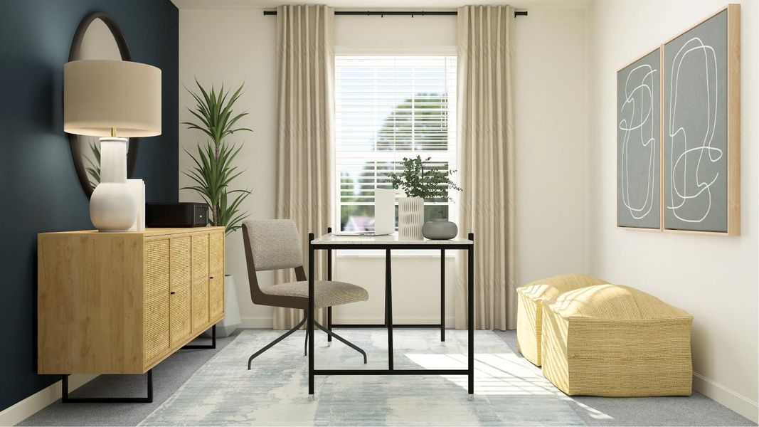 A two-story townhome with plenty of space, the first floor boasts an open layout. The kitchen overlooks the dining area and family room, which opens to a covered porch and a tech space great for work or home organization. Upstairs are four bedrooms, including the large owner’s suite with a private bathroom and walk-in closet.