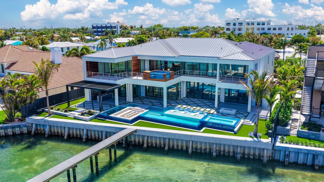 Built by award-winning High Tide Waterfront Properties on Jupiter's iconic Bahamian-blue Intracoastal, this brand-new residence delivers a true sense of arrival with standout design and thoughtful execution throughout. From the moment you enter, your eye is drawn through the home to the beautiful blue water views beyond, setting the tone for the living experience inside. Expansive living spaces are finished with high-end materials and meticulous attention to detail. High Tide is known for thoughtfully building homes that make the experience of living in them unmatched, and this property is no exception. Designed for entertaining, the backyard features multiple fire pits, a fully equipped outdoor kitchen, a waterfall feature, and inviting spaces to gather and relax along the water, creating an atmosphere that draws friends and family in. The chef's kitchen is outfitted with top-of-the-line appliances and designed to seamlessly connect to the home's main living and entertaining areas, including a club room ideal for hosting. Both first and second floor primary suites offer flexibility and privacy, while the second-floor balcony showcases a hot tub with sweeping Intracoastal views. Complete with a 32,000-pound boat lift and direct ocean access with no fixed bridges, this property delivers the ultimate Jupiter waterfront lifestyle. There is simply too much to capture in words—this is a home that must be experienced in person to fully appreciate.