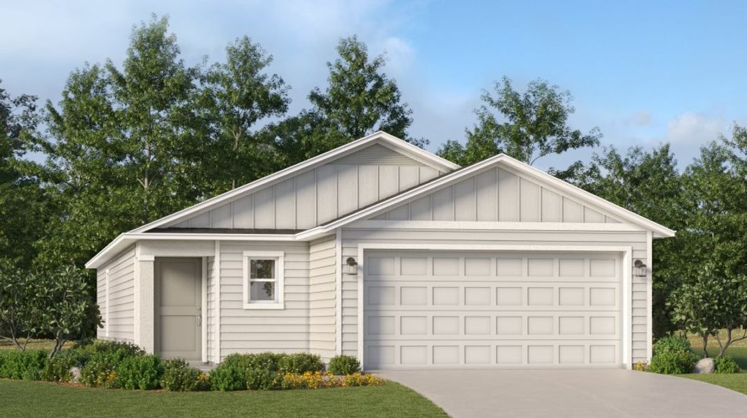 This new home is laid out on a single level for low maintenance living. Two secondary bedrooms share a bathroom in the hall at the front of the home, while the owner’s suite is tucked into the back corner with an attached bathroom and walk-in closet. Down the foyer is the open-concept living area, which includes a fully equipped kitchen, an intimate dining room and family room with patio access. Completing the home is a convenient two-car garage.
