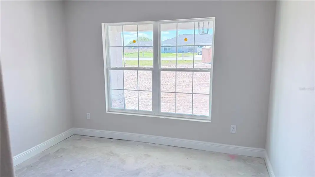Ready for occupancy May 2026. Pocketing slider doors lead out to a large lanai, creating a light and airy open space. This 3-bedroom, 2-bath home boasts ceramic tile in communal areas and carpet in the bedrooms. Gleaming quartz countertops feature in the kitchen and bathrooms, along with soft-closing cabinet mechanisms in a contemporary design. A huge walk-in pantry and an interior laundry room with two closets are included. Stainless steel appliances include a range, microwave, and dishwasher. The primary bedroom is a luxurious spa with dual quartz vanities and a tiled walk-in shower. Generous sized bedrooms. Situated in a desirable Ocala community, offering convenient access to I-75, the World Equestrian Center, and historic downtown Ocala.