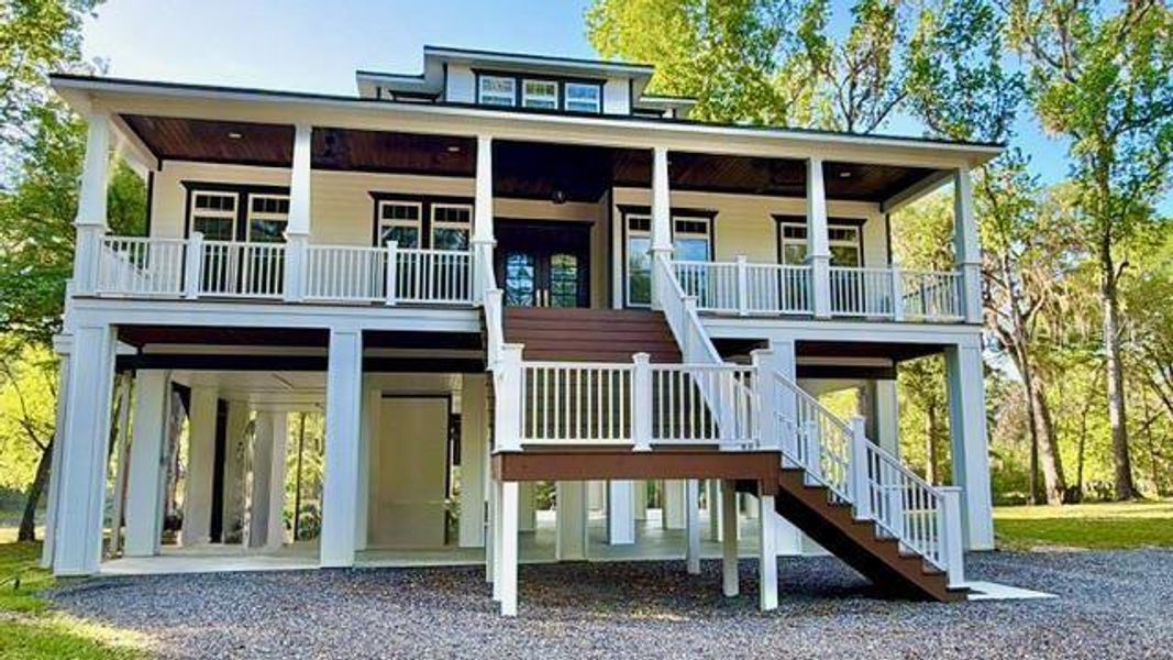 Experience the very best of waterfront living on the crystal-clear, spring-fed Santa Fe River in Branford! This stunning new construction home, built in 2025, offers 3 bedrooms and 3 bathrooms on a beautifully situated 1/2-acre riverfront lot with breathtaking views and direct water access. Designed for both comfort and style, this two-story home features a residential elevator for easy access to both levels. On the main floor there are 2 bedrooms. One has a private bath with large walk-in shower and the other bathroom gives access from the 2nd bedroom or hallway. The master bedroom has privacy at it is located on the upper floor with a small landing and storage room before entering the massive bedroom. This MBath has a tub/shower and large walk-in closet. All rooms have tall 10' ceilings and attention to detail cannot be missed. Transoms above the windows allow the natural light to pour in without losing privacy. The heart of the home is a show-stopping kitchen complete with a large island, stone countertops, a commercial-grade gas range, wine cooler, and a classic cast iron farmhouse sink—perfect for entertaining or everyday living. Enjoy the outdoors year-round with expansive covered porches on both the front and back of the home, all finished with durable composite decking on the porches and stairs. Take in peaceful river views, unwind with your morning coffee, or host gatherings with the water as your backdrop. The ground level is thoughtfully designed with a fully concreted area, ideal for parking, storage, or entertaining. A beautiful pathway of large concrete pavers leads you down to the river’s edge, where you’ll find an aluminum gangway, floating dock with swim ladder, and boat mooring—ready for boating, swimming, and enjoying everything river life has to offer. Whether you’re searching for a full-time residence or the ultimate riverfront getaway, this exceptional property delivers modern luxury in a serene, natural setting. Don’t miss your opportunity to own a brand-new home on one of North Florida’s most sought-after rivers!