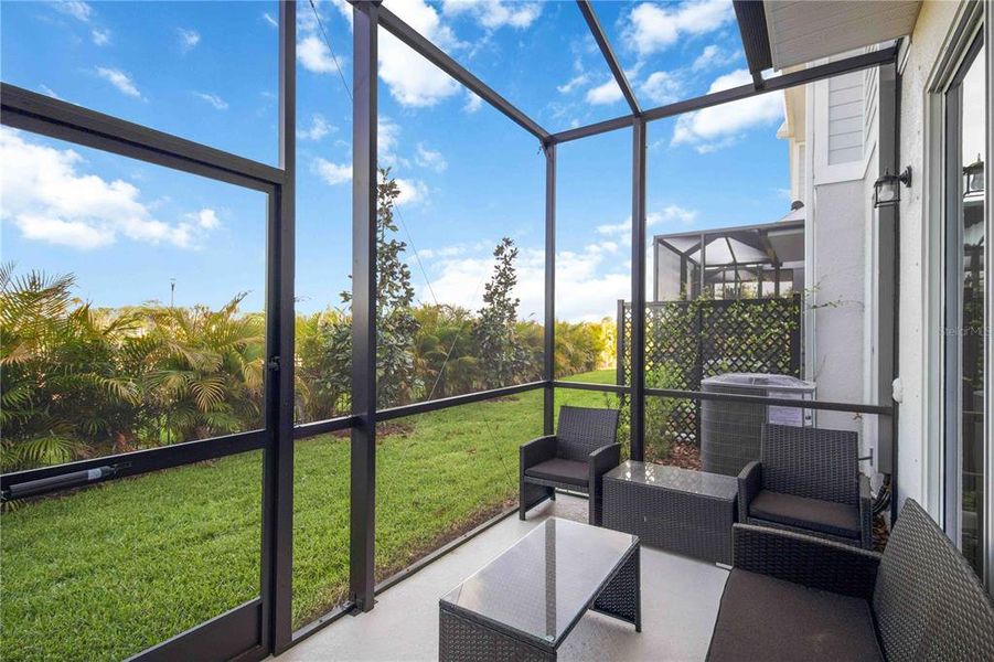 The pristine open concept kitchen features a generous island, stainless steel appliances, abundant cabinetry, and a seamless connection to the dining and family areas. Plenty of natural light brightens the space from the front door to the back sliders. A cozy screened-in patio offers a peaceful retreat where you can enjoy the outdoors in comfort and privacy. Added storage under the stairs and a two-car garage add plenty of space and functionality to the first floor.