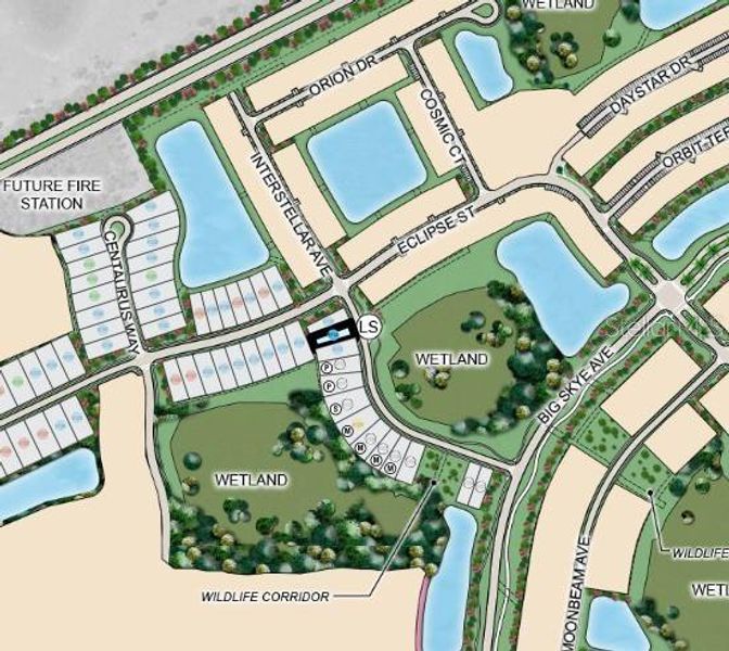 What's Special: Close to Trails | Dedicated Study | South Facing Patio | North Facing Lot. New Construction - December Completion! Built by America's Most Trusted Home Builder. Welcome to the Anastasia at 7879 Interstellar Avenue in Cassia at Skye Ranch! This thoughtfully designed new home welcomes you with an angled foyer off the front porch, offering easy access to the laundry room, a half bathroom, and the garage. The gourmet kitchen shines with quartz countertops, an apron front kitchen sink, and stylish pendant lights, all overlooking the dining area and great room for effortless everyday living. Pocket sliding doors open to the covered lanai, creating a seamless indoor-outdoor flow you will love. The main level also features a private study with French doors and a secluded primary suite at the back of the home with an en-suite bath and walk-in closet. Upstairs, you will find a loft, a spacious game room, and three secondary bedrooms, including one with a private full bath and two that share another full bath. This home also features whole house impact windows providing comfort and peace of mind. Skye Ranch sits in a prime Sarasota location at Clark and Lorraine Roads, offering a vibrant setting with access to the Skye Ranch K-8 school. The community preserves natural beauty with grand oaks, palms, wetlands, lakes, and native wildlife. Miles of trails connect you to nature, parks, and exceptional on-site amenities. Additional Highlights Include: Gourmet kitchen, pocket sliding door at great room, 8' interior door, single pocket door at primary bed to bath, shower at bath 2, and pre-plumb for future laundry tub, impact windows, and upgraded cabinets and flooring. Photos are for representative purposes only. MLS#A4690235
