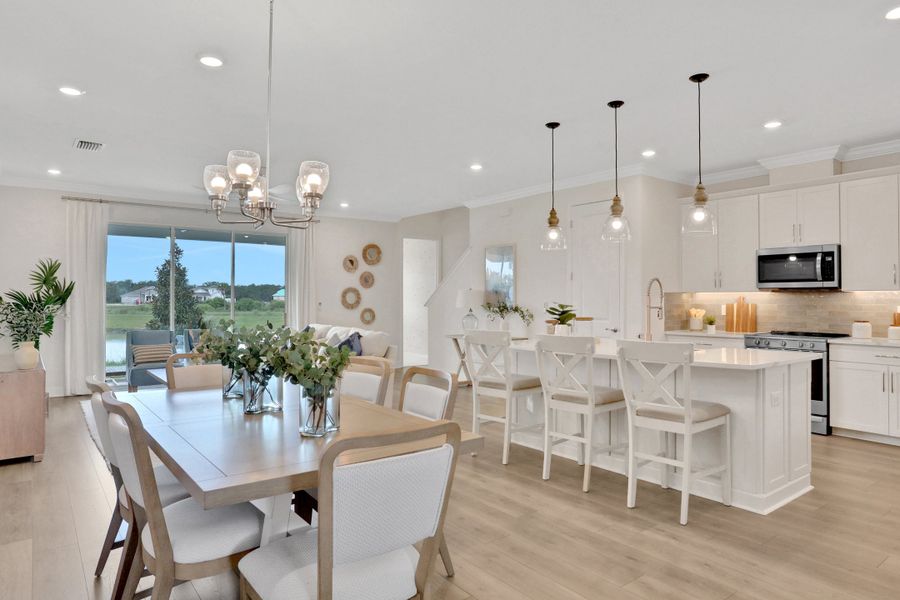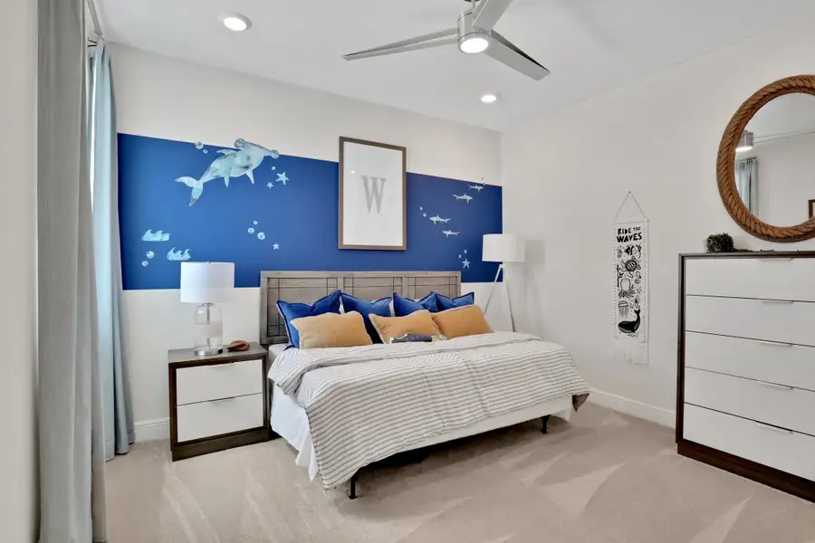 The Coral floor plan presents a contemporary living space spanning 2,043 square feet, seamlessly blending functionality with modern design elements. Featuring three bedrooms and two and a half bathrooms, this home offers comfort and convenience for residents and guests alike. The focal point of the home is its spacious open-concept living and dining areas, perfect for both intimate family gatherings and larger social events. The well-appointed kitchen boasts modern appliances and ample storage, catering to culinary enthusiasts' needs. Adding to its appeal is a convenient two-car garage, providing both security and storage space. With its thoughtful layout and stylish finishes, the Coral floor plan offers a comfortable and elegant living experience.
