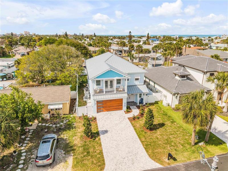 Experience the pinnacle of modern coastal luxury in this brand new 4 bedroom, 3.5 bath smart home, masterfully crafted to deliver an elevated lifestyle unlike anything else on the market. Every detail of this two-story residence has been curated to blend innovation, sophistication, & effortless comfort—all just moments from the Atlantic, where the fresh salt air can be enjoyed from either of two private balconies or your resort-style backyard oasis. A paver driveway leads to a striking double-door entry, setting the tone for the elegance found throughout. Inside, the home showcases an impressive array of integrated smart technologies, including dual Carrier AC units, multi-zoned electric control, the Eero Network, whole-house speakers, a 26 kW Generac generator, & fully automated top-tier GE Café appliances—all delivering extraordinary convenience at your fingertips. Recessed & premium lighting elevate the home’s ambiance, while locally crafted free-edge wood shelving adds warmth, artistry, & character throughout. The chef’s kitchen is the heart of the home featuring custom maple cabinetry, premium GE Café gas appliances, & a custom-built walk-in pantry designed for both beauty & functionality. This stunning culinary space overlooks a bright, open living area where hurricane-rated windows, high ceilings, porcelain tile flooring, & elegant lighting create an atmosphere of comfort & sophistication. A mounted television floats above a sleek electric fireplace, forming the perfect setting for both entertaining & everyday relaxation. Ascend the maple wood staircase, highlighted by exquisite designer fixtures, to discover the private upper level—home to all four bedrooms & a fully equipped utility room featuring a washer, dryer, & utility sink. The owner’s suite is a sanctuary unto itself, offering a boutique-style experience with a custom Birch wood California closet, a serene seating area, & a refined coffee bar with sink & refrigeration—ideal for quiet mornings on your private balcony. The spa-inspired en-suite bath impresses with floor-to-ceiling custom tile, a luxurious walk-in shower, dual sinks, & dedicated linen storage. This level also offers a secondary bedroom with its own custom en-suite bath, as well as two additional guest rooms that share access to the expansive second-story balcony overlooking the resort-style outdoor haven below. Step into a backyard paradise designed for the ultimate Florida lifestyle. A tranquil spill over hot-tub cascades into the heated saltwater pool creating a dazzling focal point, surrounded by elegant paver decking, a natural gas outdoor fireplace, an outdoor shower, & massive covered lanai complete with sink, counter space, & plumbing ready for your dream outdoor kitchen. Whether hosting gatherings or unwinding in total privacy, this space captures the very essence of coastal luxury. Additional features that elevate this home into a category of its own include an epoxy-floored two-car garage with dog wash station. The home is further enhanced for energy efficiency with standing seam metal roof for unmatched durability, spray-foam insulation, concrete block & Hardie-board construction, & full natural gas throughout. This home truly is a remarkable fusion of engineering excellence & refined coastal living, representing the best of modern innovation—crafted for those who demand the extraordinary. Beachside location, unmatched quality, & every amenity imaginable. This is coastal lifestyle defined.