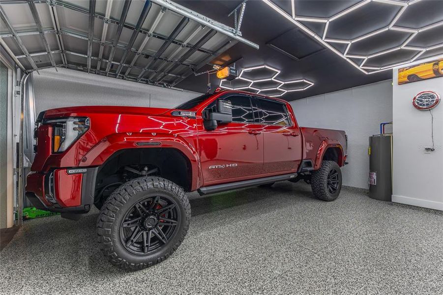 Welcome to an exceptional residence where thoughtful design, premium upgrades, and resort-style living come together in one of Lehigh Acres’ most compelling offerings. Perfectly positioned on an oversized private homesite, this fully upgraded home delivers a rare opportunity for the buyer who refuses to settle for ordinary. From the moment you arrive, the full paver driveway, manicured presentation, and impressive curb appeal set the tone for what awaits inside. Step through the front entry into a bright, open-concept interior where tray ceilings, expansive living spaces, and elevated finishes create an atmosphere of effortless sophistication. Every detail has been carefully curated, from the luxury vinyl flooring to the custom touches that make this home feel far beyond builder grade. At the heart of the home, the designer kitchen blends beauty and functionality with 42-inch soft-close cabinetry, generous workspace, and a seamless flow into the main living and dining areas—ideal for both intimate evenings and entertaining guests. The primary suite serves as a private retreat, offering comfort, style, and tranquility, while plantation shutters throughout the home add timeless character and refined elegance. Spacious secondary bedrooms and beautifully appointed baths complete a floor plan designed for modern living. Step outside and discover your own private resort. The heated, fully automated pool is surrounded by an expansive paver pool deck and screened lanai, creating the ultimate year-round outdoor oasis. Whether hosting gatherings, enjoying quiet mornings, or unwinding at sunset, this outdoor space was designed to be experienced. Beyond the beauty, the home is loaded with practical luxury upgrades including a full-house commercial reverse osmosis system, full-yard irrigation, a fully fenced backyard, and an additional storage shed for convenience. Car enthusiasts, hobbyists, and those needing extra space will appreciate the oversized 3-car garage featuring 9-foot clearance, approximately 23-foot depth, upgraded lighting, and epoxy floors. In a market filled with standard options, this is a rare one-off property where the upgrades have already been completed and the lifestyle is already in place. Move-in ready, meticulously enhanced, and impossible to replicate at this price point—this is the home that stands apart.