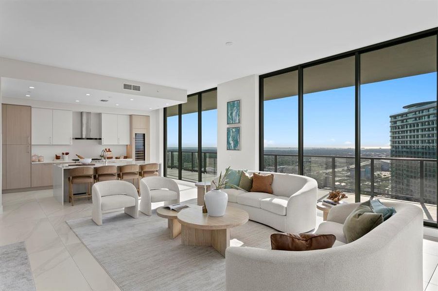 Introducing the Penthouse Collection at Art House St Pete. The Developers of One St Petersburg and Saltaire are bringing a fresh new perspective to luxury living in Downtown St. Petersburg. A sleek 42-story tower where sophistication reaches new heights with artfully designed and luxuriously appointed live, work, relax and entertain residences. Modern open plans provide the luxury of seamless indoor-outdoor living with spacious terraces, chef-inspired kitchens, flexible den/work-from-home spaces, and opulent owner’s suites featuring spa-like bathroom retreats. Penthouse A offers close to 4,000sqft of seamless indoor and outdoor living showcasing panoramic bay and city skyline views. Featuring 3 bedrooms, 4.5 bathrooms plus a den make this residence perfect for entertaining. Indulge yourself in the large owners suite with double bathrooms and 2 large walk in wardrobes plus separate soaking tub with spectacular views. Soaring 11ft ceilings opening onto the oversized 810sqft wrap around terrace are sure to impress the most discerning of buyers.