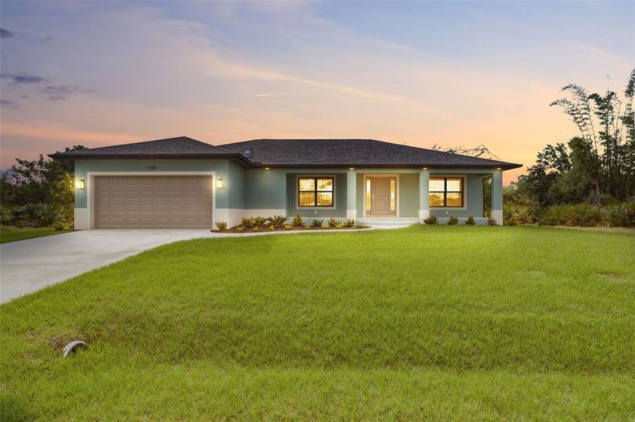 Built with solid concrete block construction and a wind-resistant hip roof with designer shingles, the home also features upgraded PGT impact-rated windows and sliders for added durability and peace of mind.