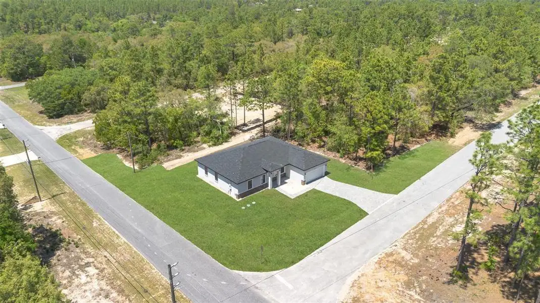 Welcome to a new standard of living in Citrus Springs! This stunning, just-completed 4-bedroom, 3-bath home isn't just a new build; it's a statement. Commandingly positioned on a spacious, elevated corner lot, this property offers both a prominent presence and a wonderfully airy perspective that sets it apart.