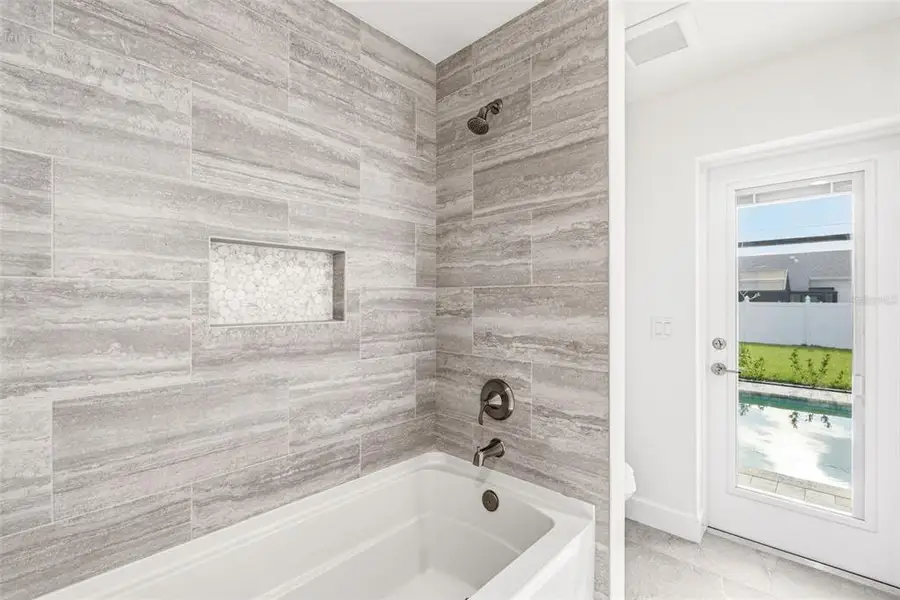 Welcome to this completed new construction pool home by JWM Residential, finished in 2025 and truly move-in ready. The Hanover 2.0 model offers a thoughtfully designed split floor plan with 3 bedrooms, 2 bathrooms, and a 2-car garage, ideal for both everyday living and entertaining. Built with solid concrete block construction and a wind-resistant hip roof with designer shingles, the home also features upgraded PGT impact-rated windows and sliders for added durability and peace of mind. Inside, the open-concept living area is highlighted by vaulted ceilings and porcelain tile flooring throughout. The kitchen is the heart of the home, featuring quartz countertops, a spacious six-foot island, Samsung stainless steel appliances, and all-wood, soft-close cabinetry with crown molding. The primary suite includes a tray ceiling with recessed lighting, dual vanities, a large walk-in shower, and a generous walk-in closet. The second bathroom conveniently serves as a pool bath with direct access to the lanai. Outdoor living is dialed in with a screened lanai, paver pool deck, and a concrete pool finished in PebbleTec. Additional highlights include an epoxy chip garage floor, full irrigation, and an X flood zone location offering added peace of mind and potential insurance savings. Located in East Englewood with easy access to beaches, shopping, dining, and world-class fishing, this home delivers the Florida pool lifestyle without the wait of building.