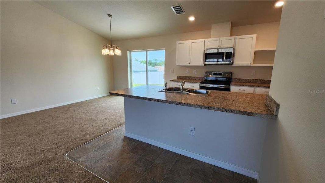 New construction in the heart of Citrus Springs! This 3-bedroom, 2-bath home offers 1,556 living square feet with an open-concept layout and vaulted ceilings that create a bright and spacious feel throughout the main living areas. The kitchen features solid wood cabinetry, stainless steel appliances, ample counter space, and a large breakfast bar overlooking the living and dining space, perfect for everyday living and entertaining.