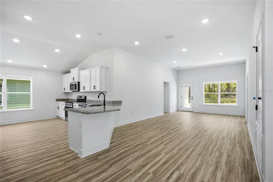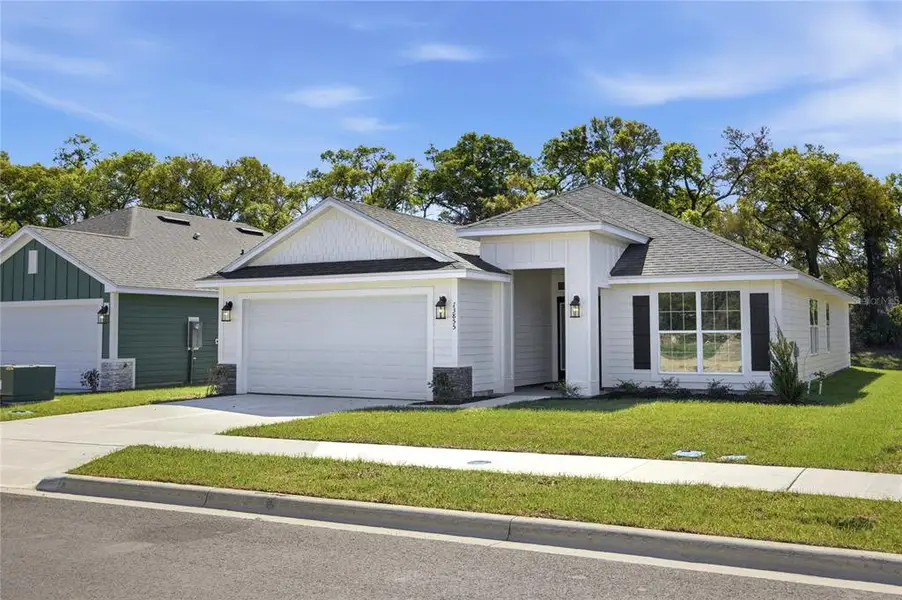 Under Construction. in Alachua just 5 minutes from I-75! This 4-bedroom, 2-bath home offers approximately 1,820 sq ft with a functional open layout and 2-car garage Lot 330 Phase 4. Conveniently located near Santa Fe High School and just minutes to Publix, Ellianos Coffee, Wawa, Chick-fil-A, and everyday essentials, with easy access to Gainesville’s schools, healthcare, and employment centers. Interior features include solid wood cabinets, matte black hardware, and granite or quartz countertops in the kitchen and baths. Luxury vinyl plank flooring is installed in all wet areas. The primary suite includes dual sinks and a spacious layout, with a 5-foot ceramic tile walk-in shower available as an upgrade option. The home also includes stainless steel appliances (range, microwave, dishwasher) and garbage disposal. Rear exterior doors feature built-in blind inserts for added privacy and convenience. Additional highlights include LED lighting, double-pane insulated windows, and a TAEXX built-in wall pest control system. Exterior features fiber cement (Hardie-style) siding with stacked stone accents. The property includes a 2-car garage plus additional driveway parking. Enjoy nearby outdoor recreation with Legacy Park approximately 9 minutes away, offering sports fields, playground, splash pad, and disc golf. Turkey Creek Golf Course and San Felasco Hammock Preserve State Park are also just a short drive away. Built by Adams Homes, a family-owned builder known for quality and value. Pre-sale opportunities available with a $1,000 deposit and the ability to select certain finishes prior to construction. Images are of similar home; actual home is under construction.