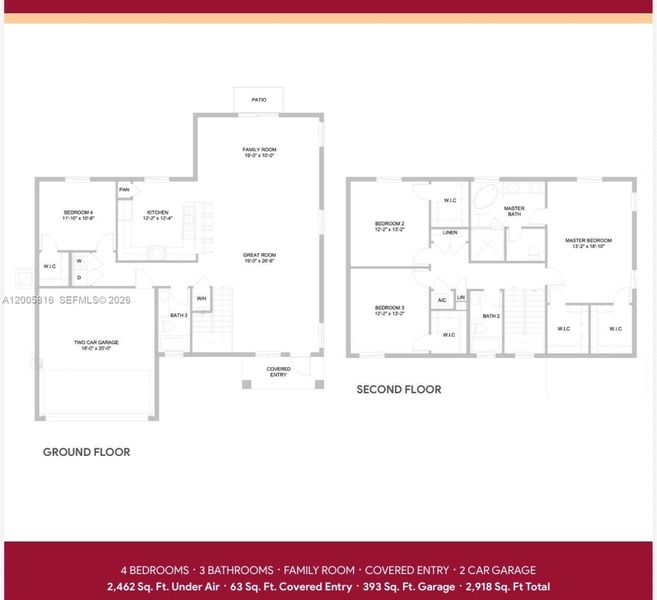4 bedrooms, 3.5 bathrooms with 2 car garage.