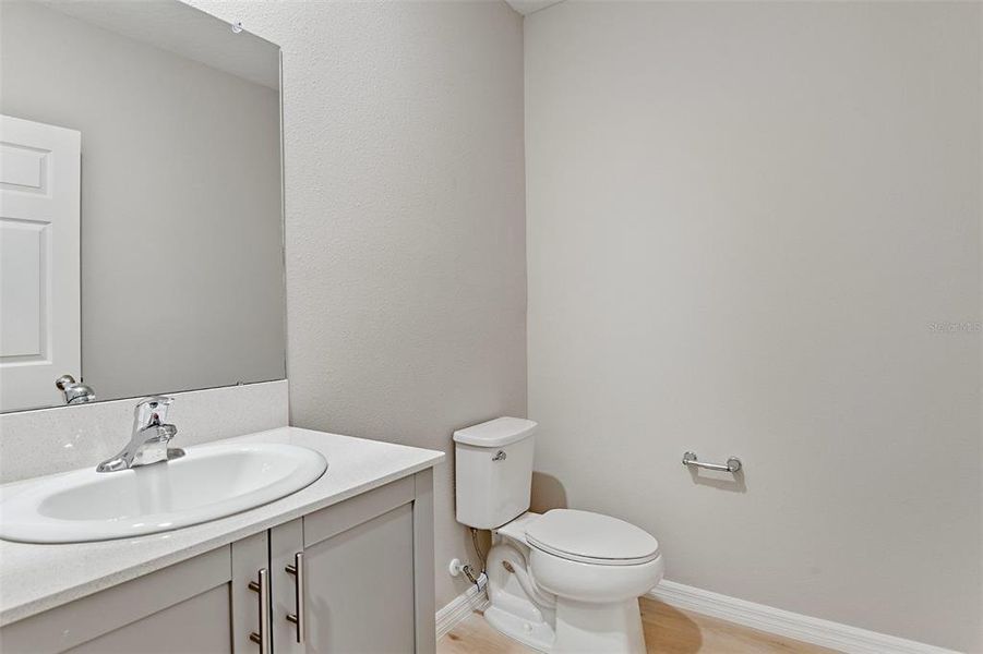 Prepare to be impressed by the Gabriela, a stunning two-story 5-bedroom, 3.5-bathroom home with a 3-car tandem garage. The inviting exterior and professionally designed landscaping exudes curb appeal. Once you're inside, you'll find a den space and half bathroom off the foyer, offering a private office or flex space. A secluded guest suite with a walk-in closet is also conveniently located on the first floor. The kitchen overlooks the open living and dining areas, seamlessly connecting to the lanai, creating the perfect layout for the Floridian lifestyle. With luxury vinyl plank flooring throughout the first floor, quartz countertops, and stainless-steel appliances, you’ll love how this floor plan lives. Upstairs, the bonus room serves as a central hub, leading to the owner’s suite and secondary bedrooms with walk in closets. The expansive owner's bathroom offers a walk-in shower, double vanity, and a spacious walk-in closet. This home also includes a smart thermostat with voice control, offering another convenient mix of functionality and modern design, setting the Gabriela apart the moment you arrive.