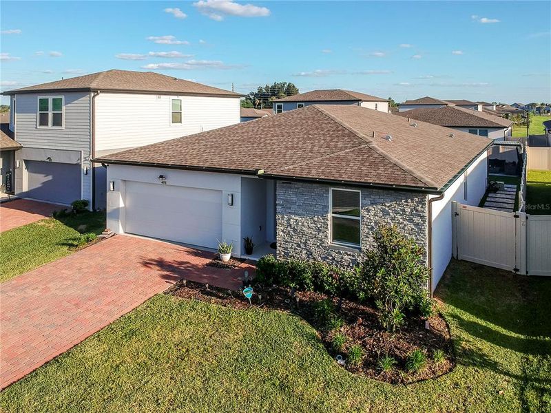 The backyard has been extensively upgraded with premium pavers and low-maintenance artificial turf, plus a fully fenced yard and custom paver walkway surrounding the home for both beauty and functionality. Additional upgrades include rain gutters already installed for added convenience.