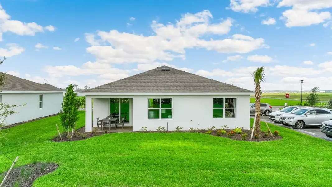 The Palmetto Landing Community presents the Cali floor plan. Boasting a serene setting with a picturesque southern waterfront view, this 4-bedroom, 2-bathroom, 2-car garage home offers not just a living space but an experience. With its modern amenities like Impact Windows, Gas Range, Tankless water heater, and high-end Cabinets paired with the elegance of quartz countertops and wood plank tile flooring (no carpet), every detail exudes sophistication. The open kitchen layout seamlessly flows into the spacious living and dining areas, ideal for hosting gatherings or simply relaxing in style. The property's potential for a future pool further elevates its appeal, offering a personal oasis right at home. Residents of Palmetto Landing can indulge in a plethora of community amenities, from the clubhouse's social and game rooms (with pool table & TV’s) to the resort-style beach entry pool with lap lanes and fitness center. With its convenient access to Babcock Ranch's shopping, dining, and entertainment options, this home is a harmonious blend of comfort and sophistication, promising a lifestyle of unparalleled convenience and luxury.