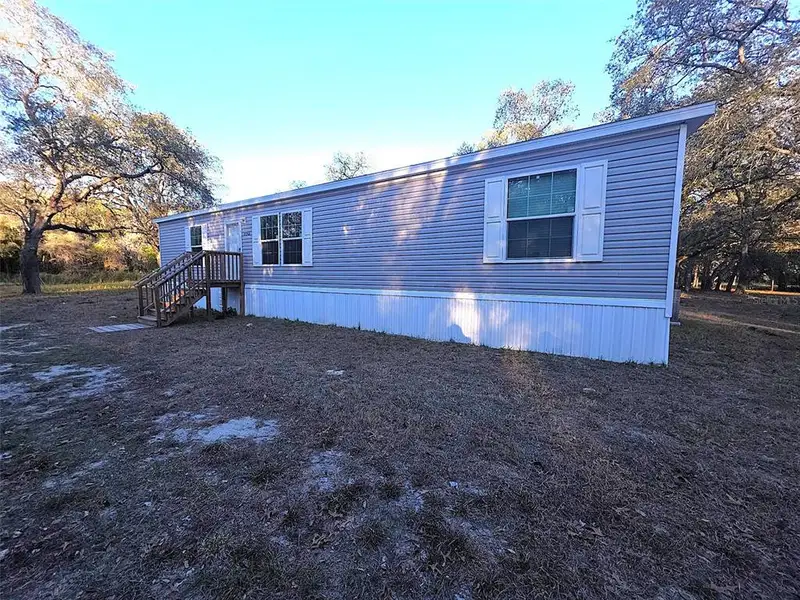 Easy living! Located in a no flood zone with no HOA or CDD, and low property taxes. The property improvement was completed only 2 years ago with well and septic system. Like-new 2024 double-wide manufactured home on a fully fenced 1-acre lot! Plenty of space for pets, outdoor living, or future additions. This move-in ready home features a 3-bedroom, 2-bath open floor plan with laminated wood flooring throughout and neutral finishes. Spacious island kitchen flows into the main living area—perfect for everyday living and entertaining.