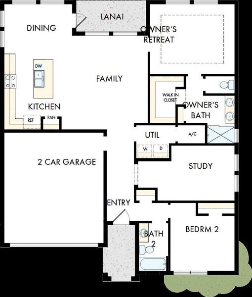 The Briarbrook bungalow is bright, welcoming, and thoughtfully arranged for flexible single-story living. Laminate flooring and fresh, airy tones create a clean foundation, while refined textures add just the right level of polish. Natural light plays a big role in the home’s open, comfortable feel, and the Owner’s Retreat stands out with a tray ceiling that brings a subtle sense of elegance. With a dedicated study, and an attached 2-car garage, the Briarbrook offers the space you need—without anything extra to maintain.