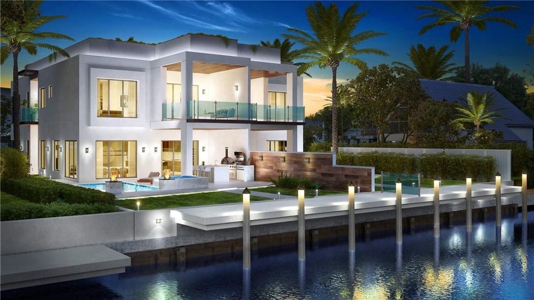 NEW CONSTRUCTION DEEP WATER ACCESS NO FIXED BRIDGES Live the Vacation Lifestyle all Year-Round. Blocks from the ocean. Take your Golfcart or casually Walk to the beach, dining & boutique shops in minutes. Private backyard with Pool, HotTub, Summer kitchen, BBQ, Refrigerator, full-sized sink, large island & Fireplace. Imported Custom kitchen with Wolf gas cooktop, oven, SubZero refrigerator, wine storage & pantry. Over-sized Master bedroom with private balcony Romantic Master bathroom with rain dome, body sprayers, slipper tub, dual vanities. Private elevator & Floating Staircase extend to Roof Top for Unobstructed Views of Sunset-Includes a boat dock to accommodate up to a 40 ft boat.