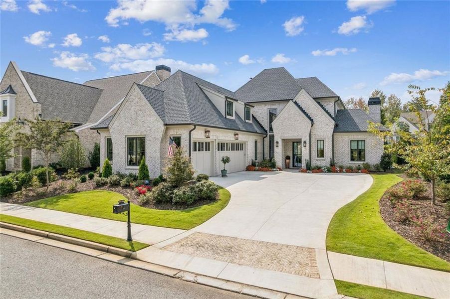 Exceptional opportunity for a Master of Main with 3 Car Garage in The Manor Golf & Country Club, nestled within the exclusive Manor Cottages enclave - this 2024-built home by Santoro Signature Homes showcases curated designer selections and sophisticated finishes throughout its 3750 square feet of elegant living space. With 4 bedrooms, 4 full bathrooms, and 1 half bathroom, the thoughtfully designed floor plan offers a seamless blend of open concept living and private retreats. The Main level features an open Kitchen with top-of-the-line Wolf and Sub-Zero appliances, leathered stone countertops, custom range hood, large island, breakfast bar and service pantry. The Kitchen is flanked by a vaulted Great Room with a gorgeous linear gas fireplace, exposed beams and a wall of windows overlooking a magnificent, show-stopping waterfall & pond in the backyard. The Kitchen also opens to an oversized Dining area with a custom-built bar with antiqued mirror backing, custom shelving and a beverage refrigerator. Sliding glass doors lead from the Dining area to a covered wood-burning fireside Veranda; and a serene saltwater, heated Pool & Spa. The luxurious main level Owner's Suite features a stunning, spa-like bathroom with large shower, double vanities, additional heater and a spacious walk-in closet with custom built-ins. Additionally, the main-level offers a vaulted, custom trimmed Office with private access to the veranda and pool area; a showstopping Powder Room with underlit, floating vanity; and an oversized Laundry Room & Mud Room area with custom shelving galore. The Upstairs features three private, spacious Bedroom Suites, each with a walk-in closet and en-suite bathroom. There is also a Flex/Bonus room on the 2nd level of the home that could be used as an office, exercise room or library. This home’s Three Car Garage features an epoxy painted floor and a surround of wainscot trim moulding. The exquisite craftmanship and extraordinary level of finishes throughout this home are unparalleled – from the top-of-the-line hardware & elegant Brizo faucets to the spectacular light fixtures; from the trim package in every room to the dramatic pops of designer wallpaper; from the custom shelving in every closet to the tile work in every bathroom. This home is impeccable from top to bottom. The home also offers an incredible amount of Storage space. The Manor is gated and has superlative amenities including indoor and outdoor pools, indoor and outdoor tennis courts & pickleball courts, fitness center, two Clubhouses, 18-hole Tom Watson designed golf course, and sidewalks throughout. Phenomenal school district. Additionally, the home is located in Forsyth County, and therefore eligible for the Senior Tax Exemption a significant $$ annual savings!! Close to shopping and easy access to GA 400.