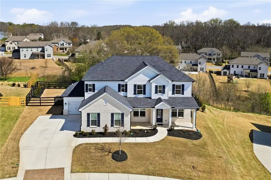 Welcome to Carmichael Farms! This 2024 like-new home offers 5 bedrooms and 4 full baths, with separate dining and private den. The open concept great room flows to the kitchen area perfectly. Kitchen offers large island, tall white cabinetry with soft-close drawers, 5 burner gas cooktop, stainless appliances, granite counter tops, tile backsplash and walk-in pantry. Perfect to enjoy family time in front of the gas log fireplace! Main level offers one bedroom and full upgraded bath with new step-in tiled shower. Upstairs is the primary bedroom and attached bath with double sinks, soaking tub and separate shower plus a large walk-in closet. Three additional bedrooms - two share a jack and jill bath and the third has an attached full bath - plus a large laundry room and oversized loft/flex area complete the 2nd level. Luxury LVP flooring in all the main areas and plush carpet in the bedrooms with tile in the bathrooms. Updated lighting throughout adds to the modern feel of this easy living floor plan. All windows have Levolor blinds. Covered patio off the main keeping room plus a fenced backyard continue the social spaces for all to enjoy, including a gas line for your outdoor grill! The backyard fencing can be extended to enjoy the full use of the large lot. Seller has added $24k+ in improvements. Community amenities include clubhouse, pool, tennis courts, fitness center, playground and sidewalks throughout. Call today for an appointment and sneak peak!