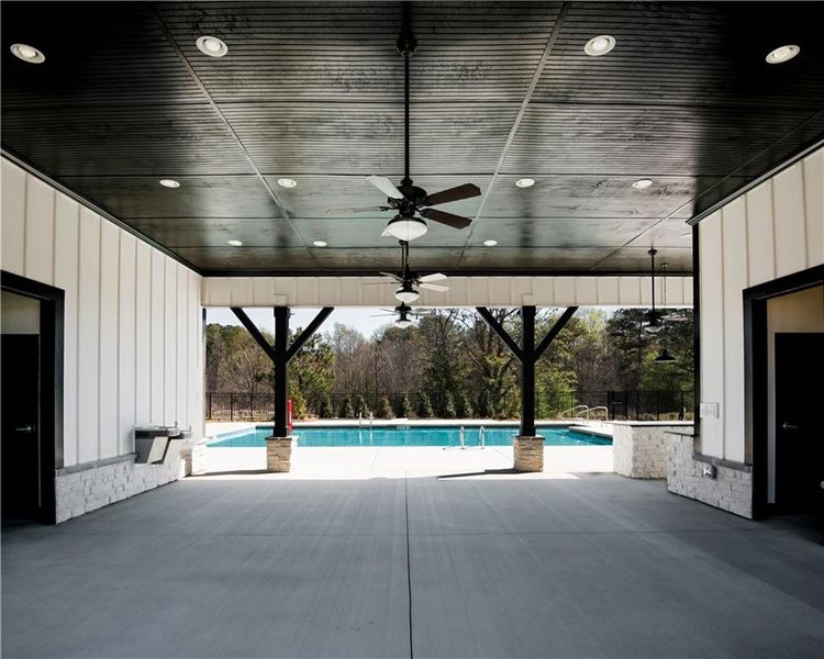 - BarBackyardLandscapingCabinetsElectric FireplaceFireplaceYard