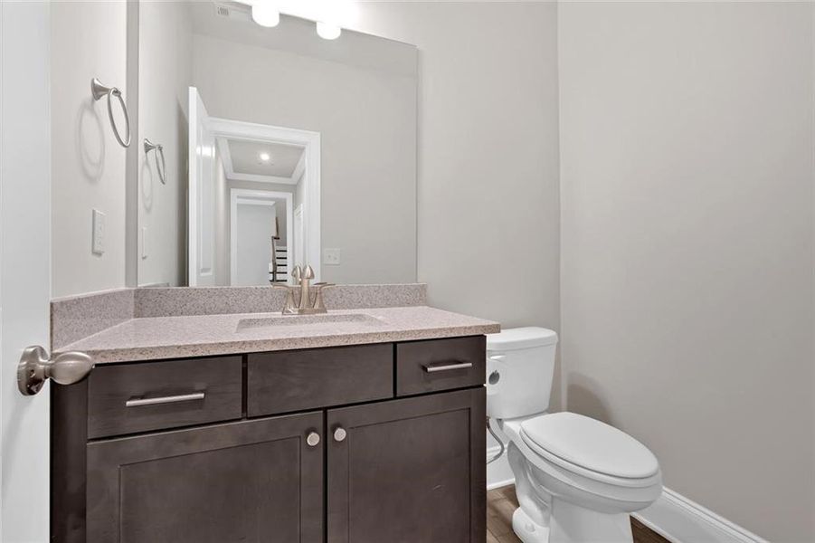 of 4.99 options available with VA, Conventional and FHA available through our preferred lenders. Lot 18 The Franklin II floor plan by Kerley Family Homes has many modern features. Be welcomed home by the wrap-around flagstone front porch. The tranquil living Room is a perfect place to spend a quiet Sunday afternoon. Family Room has a beamed ceiling and an inviting fireplace. Very spacious chef's Kitchen with walk-in pantry, large island, double ovens, 5 burner gas stovetop with pot filler, quartz countertop, microwave drawer. Hardwood floors throughout the first floor with extensive LED lighting. The Dining Room has a coffered ceiling, elongated light fixture, paneling and large windows. The covered deck sporting a ceiling fan/light with stairs leading to the downstairs flagstone patio. Upstairs 4 large bedrooms and your dream Owners Suite: trey ceiling, separate vanities, rain head and regular shower heads with his and hers closets. All with modern finishes. The basement is stubbed for a bathroom with a flagstone back patio that sports a fire pit which is fenced in with gates on each side of the home. We include with each home a Builder's Warranty and the installation of the in-wall Pestban system. Opened Tuesday through Saturday 11a – dusk and Sunday and Monday 1p to Dusk.