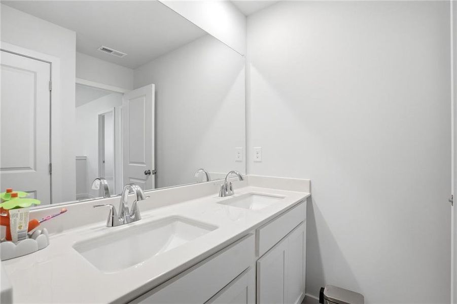 Upstairs, the spacious primary suite features an oversized walk-in closet and a private bathroom with a large walk-in shower. The second level also includes three additional bedrooms, a versatile loft space, and an oversized laundry room conveniently located near the bedrooms.