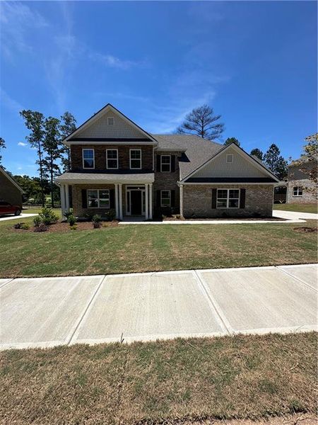 ADAMS HOMES 3320 Floorplan features 5 Bedrooms-3.5 Baths Primary suite on MAIN-Elegant Two-Story Family Home with Abundant Natural Light. Step into timeless elegance with this beautifully designed two-story family home, where light a space blend effortlessly. The grand exterior features classic architectural details, while large thoughtfully placed windows flood every room with natural sunlight, creating a bright and inviting atmosphere throughout. Inside, the spacious family room perfect for gathering, with soaring ceilings and a wall of windows that brings the outdoors in. The gourmet kitchen is a chef's dream complete with spacious granite countertops, tile backsplash, stainless farmhouse sink, beautiful cabinets featuring soft close, access to spacious walk-in pantry, ease to elegant spacious dining room and breakfast room. Upstairs, generously sized bedrooms offer comfort and privacy, all secondary bedrooms feature a walk-in closet with bedroom 4 having access to its own bath, bedroom 5 is very spacious that some would consider the size of a primary suite. This home sits on a serene spacious GOLF VIEW lot where you can enjoy this view from a covered deck, featuring ceiling fan and the ability to bring the entertainment outdoor with access to already installed cable outlet and additional electrical outlet. This home is built with the whole family in mind and a space to bring all of your design ideas to life. This home features 4 sides brick. side entry garage with ample additional parking space. From the garage you will enter into a spacious mudroom/laundry room that is a must see to believe all the possibilities this room offers for your family.