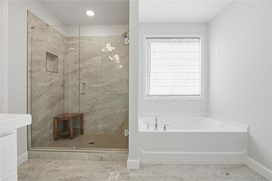 Upstairs, the spacious owner’s suite offers a private retreat complete with a soaking tub, separate shower, double vanity, and an expansive walk-in closet. Three additional bedrooms, a full secondary bath, and a conveniently located laundry room complete the upper level.