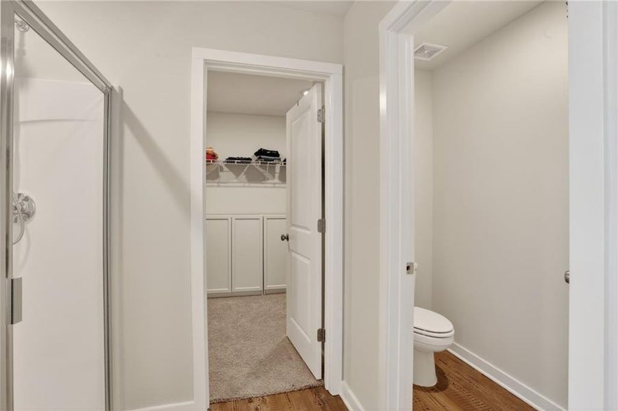 Luxury vinyl plank flooring enhances the main level, all bathrooms, and the laundry room, adding both durability and style. Upstairs, the expansive primary suite serves as a private retreat with a walk-in closet and an elegant en-suite bath featuring a walk-in shower. A generously sized second-floor laundry room offers convenient access to all bedrooms, making daily routines effortless.