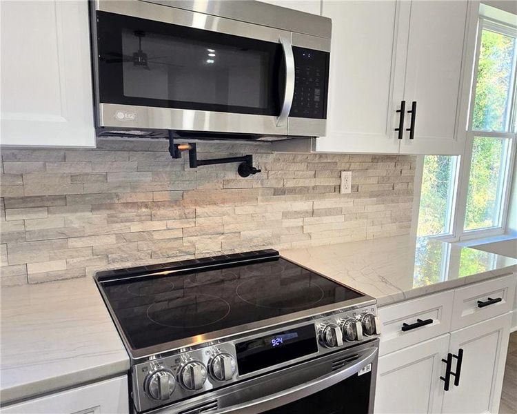 EARLY BLACK FRIDAY DEAL!! Reduced to the ridiculous for NEW Construction. Where can you find all these Luxury Finishes and smart design at this price point! This 4-bedroom, 2-bath ranch features an open-concept layout, soaring 10’ ceilings, a show-stopping kitchen including an oversized 8’ quartzite island to have friends & family cozy up to the "Bar"! Special kitchen features include cabinetry on both sides of the island for extra storage, a pot filler, LG SS appliances including double oven range, and French door refrigerator with Craft Ice maker—a true chef’s dream. Great Room is spacious with plenty of wall space for your BIG TV and sectional/sofas.