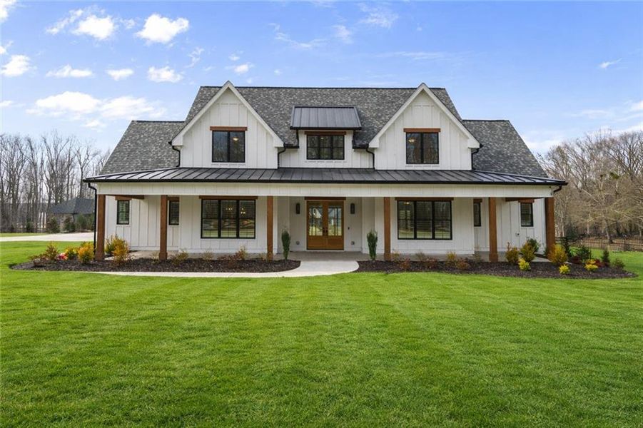 This beautifully completed new construction home rests on 1.23 acres with no HOA, offering the rare luxury of space, privacy, and peace—just minutes from Lake Lanier and top-rated Forsyth County schools. Imagine yourself coming home each day, greeted by professionally landscaped grounds and an oversized covered front porch with cedar ceilings that feels both welcoming and timeless. Inside, the spacious two-story great room is filled with natural light, anchored by a fireplace, custom bookshelves, and a stunning wall of windows—an elegant yet comfortable space made for lively gatherings, quiet evenings, and intimate family movie nights. The kitchen is where beauty meets purpose, designed to impress and to serve everyday life with gorgeous cabinetry, an oversized island meant for conversation, a wall oven, six-burner range with pot filler, and exceptional storage, including a butler’s pantry, additional pantry space, and a generous laundry room that keeps everything effortlessly organized. Just beyond, the oversized dining room sets the stage for holiday traditions, celebratory dinners, and moments you’ll look forward to all year long. The Master on main offers a serene escape at the end of the day, with a spa-inspired bath featuring a large tiled shower, soaking tub, marble finishes, and a custom closet system designed for both beauty and ease. A secondary bedroom on the main level with its own full bath provides a gracious space for guests or a refined home office. Upstairs, an open loft and media area with an office nook offers a flexible retreat, while spacious secondary bedrooms and three additional baths, ensure everyone has room to unwind. A 512-square-foot unfinished bonus room quietly awaits its future purpose, ready to grow with you over time. Thoughtful details like the mud room, half bath, and oversized three-car garage—built to accommodate trucks and storage—add comfort and convenience to daily living. In the back, the covered porch overlooks a wide backyard designed to accommodate a future pool—an open canvas for summer evenings, peaceful mornings, and memories yet to be made. Built by Southern Comfort Homes, a fourth-generation builder known for craftsmanship and care, this home blends luxury with heart, offering a place not just to live—but to truly belong.