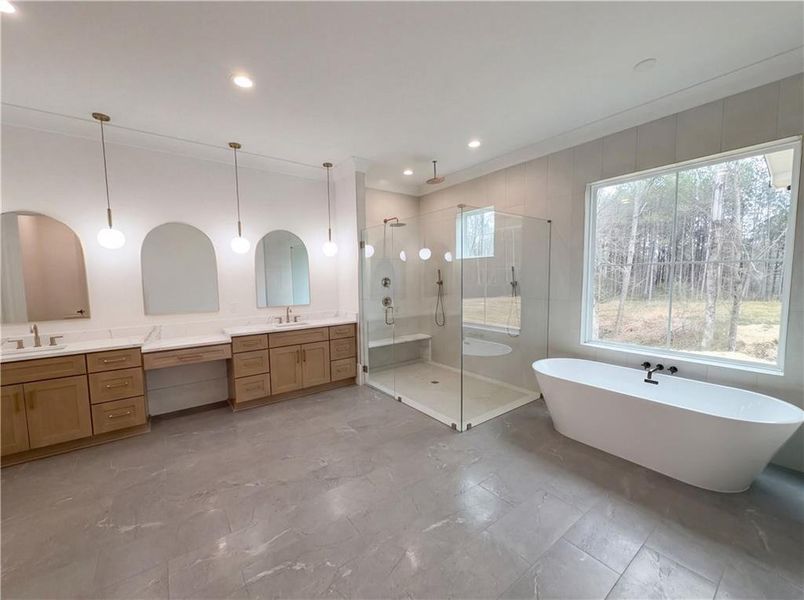 - Ceiling-HighWalk-In ClosetCrown MoldingFoyerCoffered CeilingPantryBuilt-in BookshelvesTray CeilingBreakfast BarWalk-In PantrySeparate ShowerDouble Vanity
