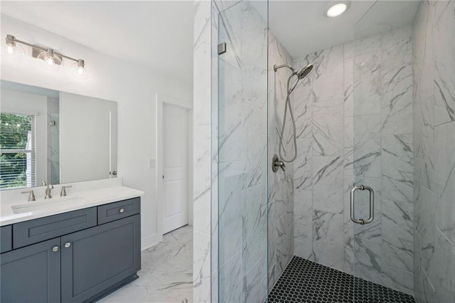 QUICK MOVE-IN! Welcome to the Ruby Floorplan, a beautifully designed 5-bedroom, 4.5-bath home that blends style, comfort, and functionality. With its open layout, dedicated dining area, and gourmet kitchen featuring a large island, this home is an entertainer’s dream. A main-level bedroom with a full bath provides flexibility for guests or multi-generational living. Upstairs, the expansive primary suite offers a spa-like retreat with a soaking tub, separate shower, and dual vanities. Spacious secondary bedrooms, a large laundry room, and a versatile flex space make daily living even more convenient. For homes built on a slab, a finished bonus room adds extra versatility—perfect for a home office, playroom, or additional bedroom. The Ruby Floorplan also features a spacious 2-car garage and access to all that Stonegate Manor has to offer—a premier new construction community where luxury meets convenience. Located just 10 minutes from Hartsfield-Jackson Airport, with easy access to I-285 and I-75/85, the neighborhood is also close to top-rated schools such as Woodward Academy, KIPP, and Resurgens Hall Charter School. Don’t miss your chance to call this sought-after community home. Schedule your private tour today or stop by during our on-site office hours: Thursday–Friday (11–5), Saturday (11–3), and Sunday (12–4). Additional appointments are available throughout the week.