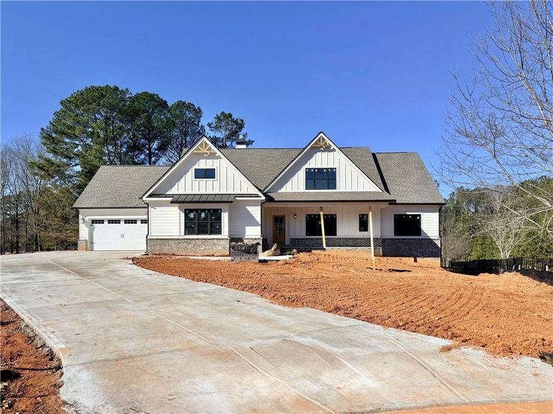 New Construction! The Riley-FOUR CAR GARAGE and Basement - This 4 bedroom 3.5 bath home features RevWood flooring throughout, tile baths and coffered dining room. The fireside family room with vaulted ceiling and brick to ceiling fireplace opens to the gourmet kitchen, which features double ovens, vent hood, a large kitchen island, farm kitchen sink, abundant painted cabinets and quartz countertops. The private, vaulted primary suite with cedar beams leads to the primary bath which features his and her vanities, a relaxing free standing tub, separate tiled shower and a walk-in closet. The secondary bedrooms have walk-in closets and a Jack & Jill Bathroom. Upstairs is the bonus room/4th bedroom with full bath and loft/office. This home is situated on a private 1+ acre lot in Monroe. Enjoy your backyard from the covered porch. Up to 25k incentive with use of our preferred lender.
