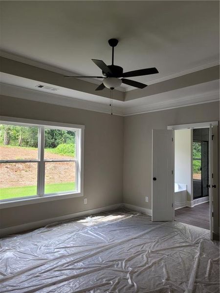 - Walk-In ClosetCrown MoldingFoyerPantryTray CeilingSeparate ShowerDouble Vanity