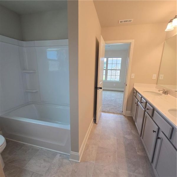 NEW CONSTRUCTION! MOVE IN READY! Corner Lot! The sought after Bennington plan is a 5Br/4Ba with Full Guest Suite on Main. Open Concept. Fabulous Kitchen with lots of cabinets, Center Island and Views to the Grand two-story Family Room with Wall of Windows. Quartz Countertops, Tile backsplash, Upgraded Gray Cabinets, Hardwood floors, Stainless Steel appliances, Iron rail staircase. Hard to find Formal Living Room and Formal Dining Room. Gorgeous two-story Foyer entrance. Large Master Bedroom w/Walk-in closet, enjoy your Beautiful oversized Master Bathroom w/ Large His and Her's Vanities, Garden tub, Tile shower surround and Tile flooring. Upstairs has a Teen Suite w/ a Full Bathroom and Walk in closet. Two additional Bedrooms share a Jack-n-Jill Bathroom. Enjoy your REAR COVERED PATIO great for entertaining, family-get togethers, or just enjoying the great outdoors. New Construction with 2-10 Warranty. ** Some Pictures are of another home and an Example of the home being built.