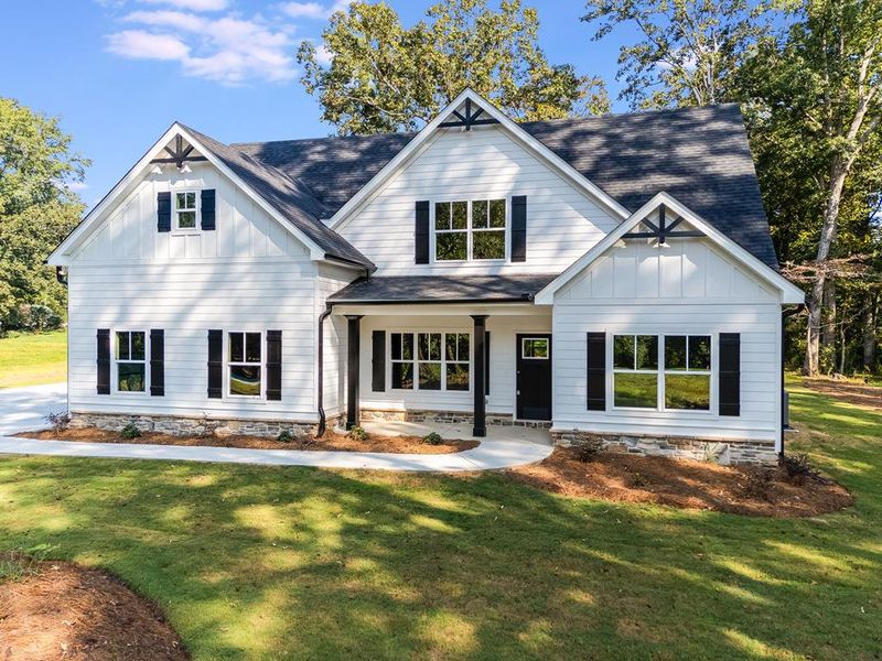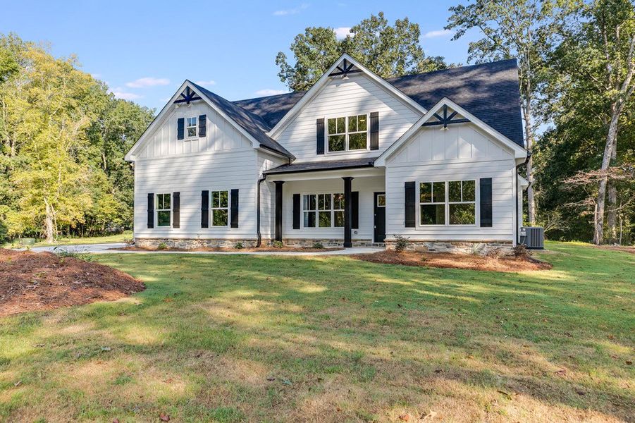 We Revamped a POPULAR Plan and made it even BETTER! Sitting so pretty on 4 acres with hardwood trees as a back drop, you will be stunned at how pretty this house is going to be. 4 ACRES in the Burwell Community that is conveniently located to Carrollton, Bowdon and I-20, yet offering the "country feel" with NO RESTRICTIONS and NO HOA! A long concrete driveway leads you to this beauty. Mohawk REV-Wood Flooring in the common areas with hardwood staircase leading up the back (hidden) staircase. Owner's Suite is located on the MAIN LEVEL, along with a secondary bedroom and full bathroom also on the MAIN LEVEL. Vaulted family room awesome electric linear fireplace are features, along with a beautiful formal dining room. The kitchen boasts a central island, pendant lighting and designer finishes. Upstairs you'll find 2 large secondary bedrooms, a BONUS ROOM and a full tiled bathroom. There's a covered front porch with a 12" stone water table across the front and there's also a back covered patio that is set up to mount a tv for those fun game days or just relaxing. Professionally landscaped yard with SOD, easy to maintain HARDI concrete siding and energy efficient windows, Zoned HVAC and SUPERB WARRANTY with 10 year structural warranty. We stand behind our products 100%. Don't let this one get away. This home is PRICED RIGHT!