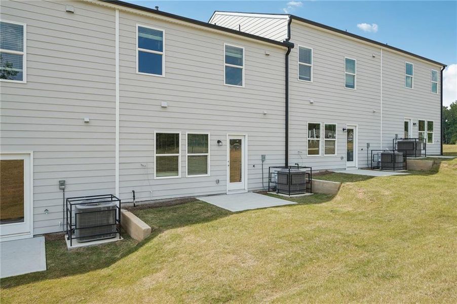 Brand new, energy-efficient home available NOW! Prepare a casual dinner or special occasion in the spacious kitchen that opens into the dining and living room. Invite guests to stay in the upstairs secondary bedrooms with a shared full bath. Unwind in the primary bedroom complete with tray ceilings. Welcome to Artisan Walk, where modern living meets the vibrant spirit of Fairburn. Offering two-story townhomes, we will soon be selling move-in ready homes with the latest design trends. Browse artisan shops for treasures, savor delicious food, and enjoy live music that fills the air with joy at the Georgia Renaissance Fair. Ronald Bridges Park offers the perfect retreat with pavilions, basketball courts, and scenic nature trails. Each of our homes is built with innovative, energy-efficient features designed to help you enjoy more savings, better health, real comfort and peace of mind.