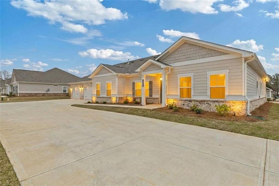 Creekwood a 55 and over community in Powder Springs, Cobb Co. Our Augusta an attach ranch villa offers 2 car garage with extra storage plus the serenity of the covered front and screened porch to have your morning coffee or just relaxing through out the day. Must have features include open and airy concept floor plan, upgraded cabinets, stainless steel appliances, laminate floors, 9' ceilings with crown molding, large island, granite counter tops, and separate eat in area. The large primary suite offers trey ceiling and is large enough to accommodate and oversize king bed and ample space for dresser and night stand. The primary bathroom features tile bath with a stepless tile shower with a bench, walk in closet, linen closets and private water closet area. Two secondary bedroom on the opposite side of the home offers a full bath with gentleman vanity, and bath tub shower combo. Close to all shopping, Home Depot, Pharmacies, Publix, Restaurants and Silver Comet Walking Trail. Incentives with trusted lender, Homeowners Financial Group. Ready to close
