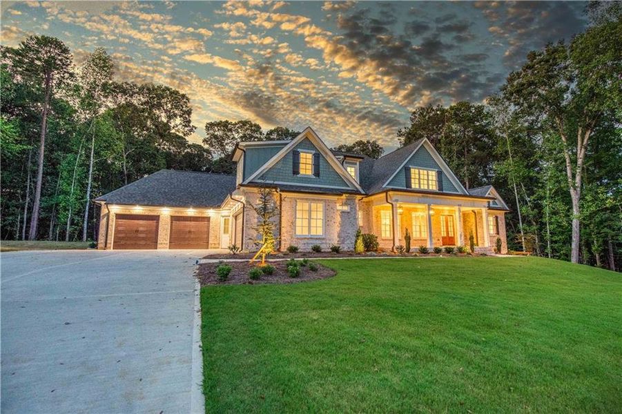 Stunning New Construction on 2.29-Acre Lake Lot in Gated Community! Welcome to luxury lake living in this exceptional 4-sides brick home, nestled on a spacious 2.29-acre lot in a gated community featuring a private boat ramp and pavilion. With the option to build your own dock, this lake lot offers the perfect blend of privacy, functionality, and upscale design. This thoughtfully designed home features 4 bedrooms and 4.5 bathrooms with an open floor plan ideal for entertaining. The chef's kitchen is the heart of the home, boasting a large working island, quartz countertops, custom tile backsplash, farmhouse sink, and high-end stainless steel appliances including a gas cooktop, decorative hood, double ovens, microwave, and dishwasher. The main-level owner's suite is a relaxing retreat complete with a soaking tub, large tiled shower, double vanities, and elegant tile flooring. The formal dining room showcases coffered ceilings, while the spacious family room centers around a beautiful stone fireplace and is accented by soaring floor-to-ceiling windows that flood the space with natural light. Upstairs, you'll find three oversized bedrooms, each with its own private en-suite bath. Additional highlights include hardwood, tile, and carpet flooring throughout, a 4-car garage, irrigation system, and landscape lighting for added appeal. This home offers luxury, space, and the lake lifestyle don't miss your chance to make it yours!