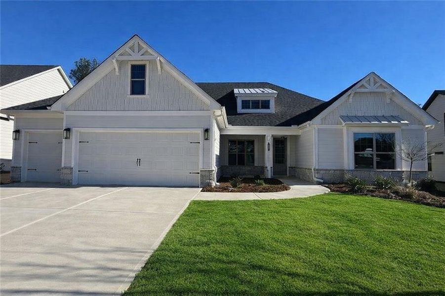 Wesley B. Main floor living at its best, includes a dining room, study, kitchen with large island that opens to the family room and breakfast room. The primary bedroom includes a sitting bay and bath with a huge walk-in closet. Secondary and tertiary bedrooms includes a walk-in closet with easy access to hall bath. Covered deck off family room with an additional grilling patio. Quad doors in the family room leading to the patio. And finally the garage includes, a Golf Cart garage with an extra 3ft extension to the garage. As well as additional garage attic storage. The Award-Winning Builder, Patrick Malloy Communities, provides an Award Winning 55 plus community project, Soleil Belmont Park. It features 471 low maintenance homes situated on large home sites. Located between the picturesque towns of Milton and Canton, Soleil Belmont Park provides a dream setting for active adults aged 55 and above. The Soleil brand has redefined active adult living in Georgia with its resort style of living. Residents of Soleil Belmont Park are privy to an array of amenities: a rejuvenating resort-style pool, a cutting-edge health & fitness center, a cozy coffee and cocktail bar, pickleball/tennis courts, bocce ball, a gourmet kitchen for catering, winding walking trails, flourishing gardens, and a dedicated arts & crafts studio. Further enriching the experience, an on-site lifestyle and travel director ensures an ever-evolving calendar of events and excursions. Joining the Soleil community means bidding adieu to seasonal chores and property upkeep. We offer comprehensive services, allowing residents the freedom to chase passions, kindle friendships, and truly relish life. For the discerning active adult, Soleil Belmont Park isn't just a community, its home.