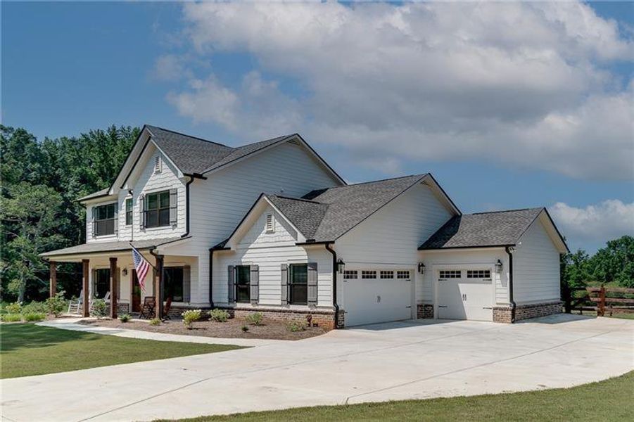 Step outside to your own private retreat: an expansive covered porch with TV wall and grilling area overlooking the fenced backyard—perfect for hosting or savoring Georgia sunsets. Peaceful and private yet only minutes to local conveniences and Lake Varner, this home delivers craftsmanship, space, and serenity all in one.