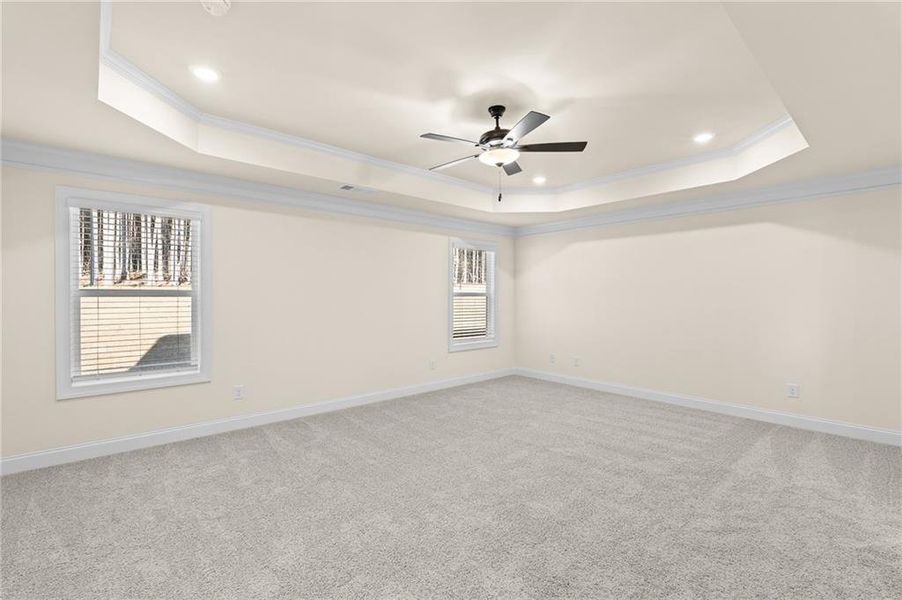 - Ceiling-HighWalk-In ClosetCrown MoldingFoyerCoffered CeilingPantryTray CeilingBreakfast BarLoftSeparate ShowerDouble Vanity