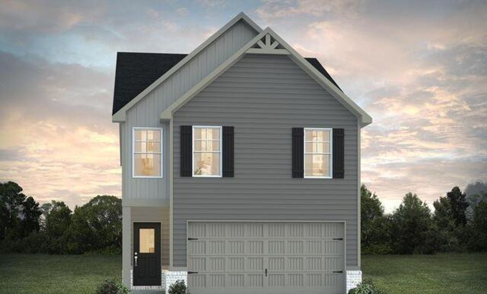 The Sierra is a 4 Bedroom, 2.5 Bath open concept floor plan. Upstairs, 3 secondary bedrooms, a full bathroom in hall and laundry room. Owner's suite with walk-in closet, master bath with double vanity, and garden tub/shower combo. The spacious kitchen with/ island overlooks the family and dining area. This home is also complete a with covered patio, full house blinds, UV air and surface treatment for HVAC, wrought iron spindles, LED lighting, granite throughout, 1-yr Builder's & 10 yr. Structural New Home Warranty, & MUCH more! The convenient location is a PLUS with just minutes away from shopping, dining, entertainment and parks with easy access to Interstate I-85. Home information, including pricing, features and availability are subject to change prior to sale without notice or obligation. Square footage dimensions are approximate. **Sample Rendering Shown. **